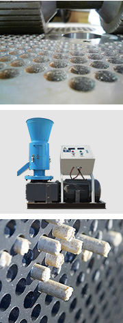 原料通過(guò)高溫,在壓輥和模盤的擠壓下,通過(guò)模盤上的孔,優(yōu)質(zhì)成型的顆粒從出料斗滾動(dòng)而出